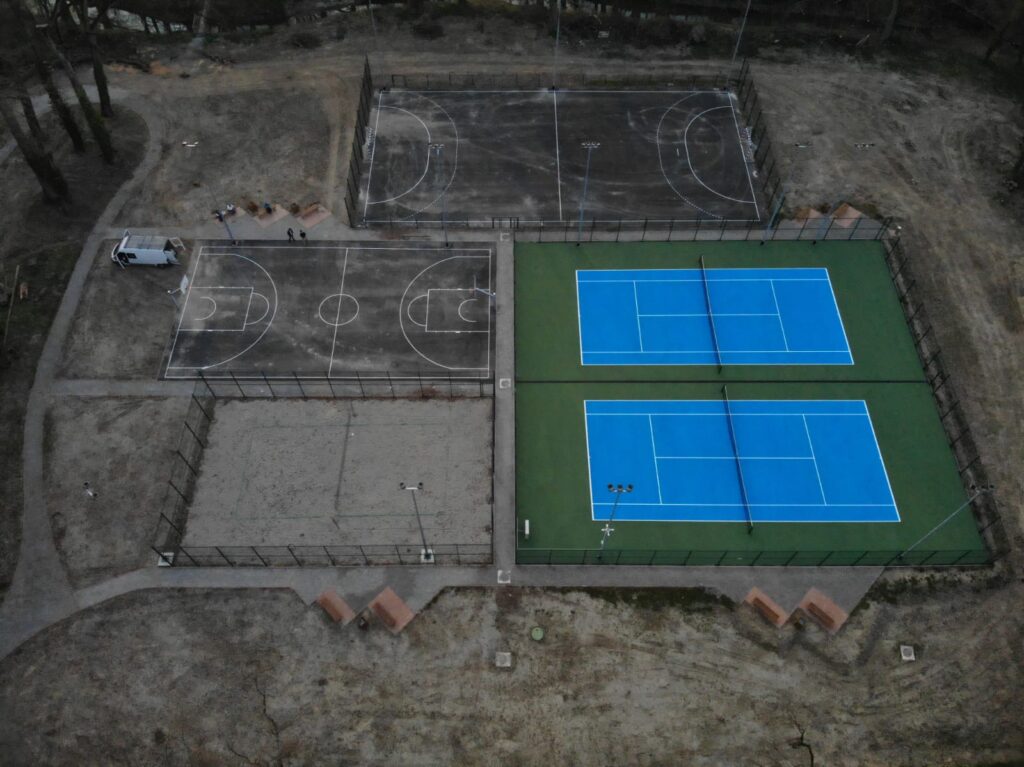 Dva tenis terena od vještačke trave, nabavka materijala i montaža. Visina trave je 15 mm ispunjena kvarcnim pijeskom. Nabavka i montaža mreža.